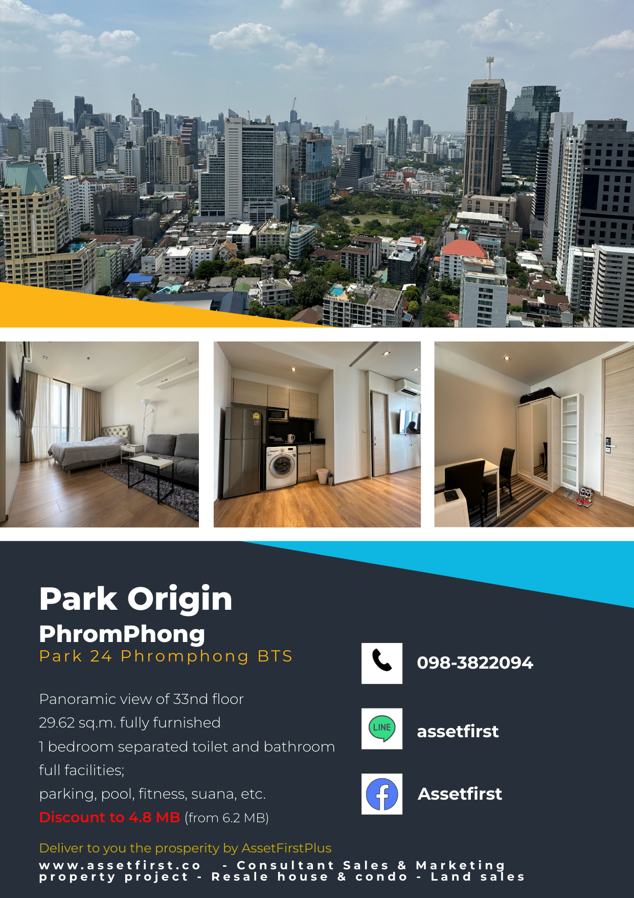 Park 24 Sukhumvit 24 High floor 33th 1 bedroom 29.62 sq.m. for sale disc 4.8 MB from 6.2 MB